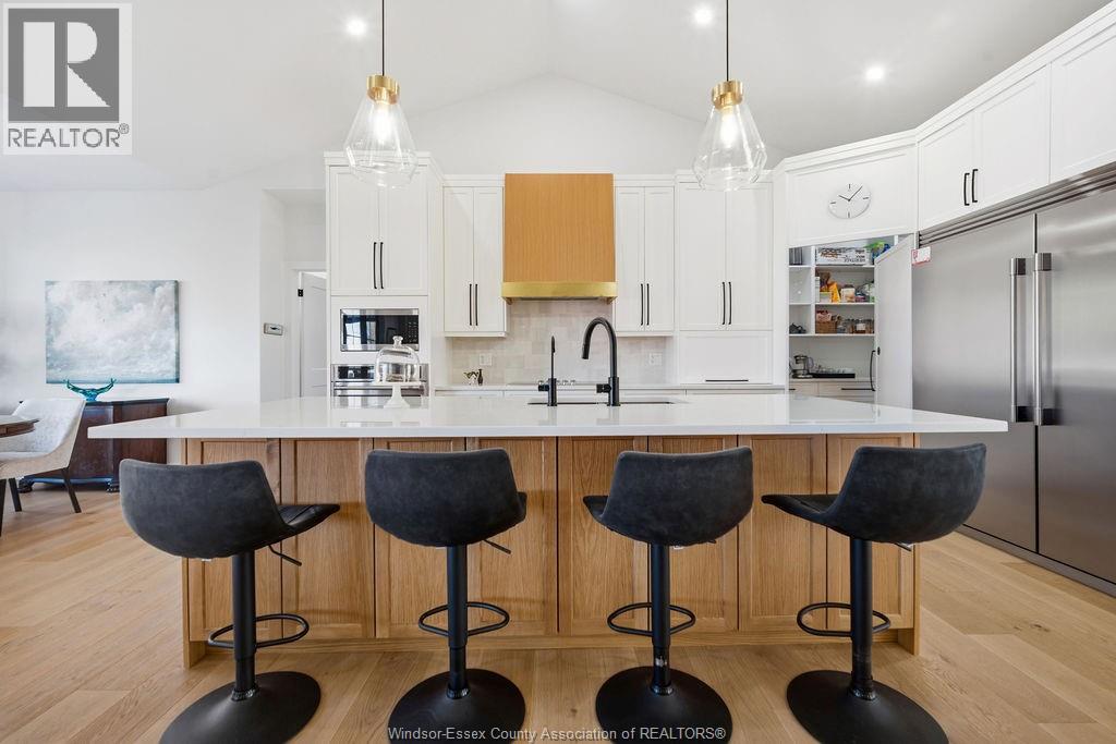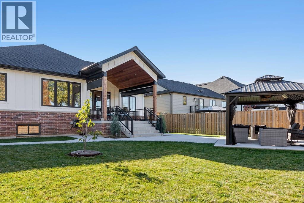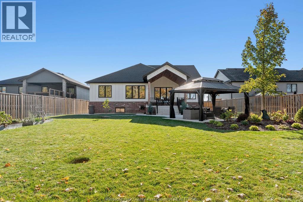 5 bedroom executive ranch in the heart of Essex County within the municipality of Kingsville. Experience the perfect blend of small-town serenity and high end modern design in this 5 yr young custom ranch. Spanning approx 1900 sq ft of main floor luxury, this home is defined by its black windows, custom mill work and warm wide plank wood floors. Designed for accessibility and ease, this home features main-floor laundry and a specialized Bruno lift in the garage. The primary level offers 3 spacious bedrooms, while the finished lower level provides 2 additional bedrooms, perfect for a secluded home office or guest wing. With 170ft deep lot the backyard offers an outdoor oasis with a covered back porch and a massive, meticulously landscaped yard featuring a private gazebo. Situated halfway between the Town of Kingsville and Windsor with immediate access to Highway 3, you are minutes from world-class wineries, the new EV Battery Plant, and the US border, all while enjoying the unmatched quiet of Cottam. (id:4555)