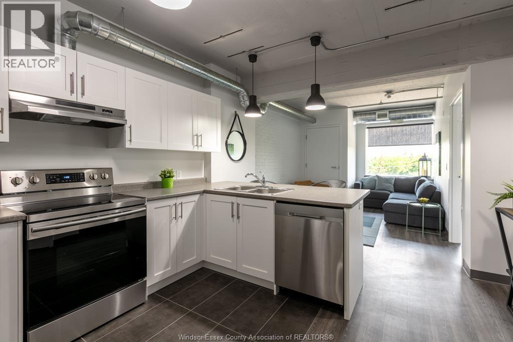 Note: Rental amount includes gas heat, water and parking for multiple cars! Sizable nearly 950 sq ft loft on the 4th floor with a great north view above the treetops. Huge in suite laundry room and king-sized primary bedroom with walk-in closet! Welcome to the Lofts at the Square. Gorgeous & modern 7 yr old loft apartments. Beautiful modern white kitchen with breakfast bar. Every apt has its own forced air gas heating & c/air unit! Comes with 5 appliances including dishwasher. Secure building. Bright and modern hallways. Shopper’s Drug Mart, bank, bingo and restaurants all on site. Highly walkable Walkerville area. City transit steps from door. Willistead park, local farmer vendors and a fantastic trendy restaurant district all within a couple km. Close proximity to 2 hospitals and the U.S. tunnel crossing. Tenant pays electricity. No smoking. Note: photos are of a staged model unit. Identical finishes/layout. (id:4555)